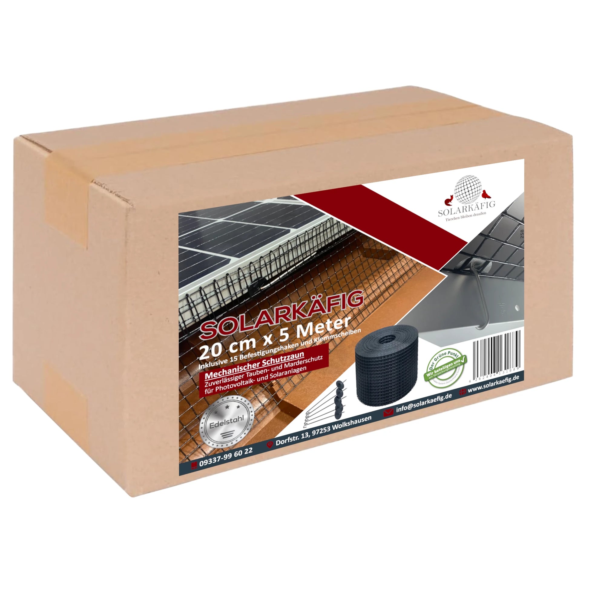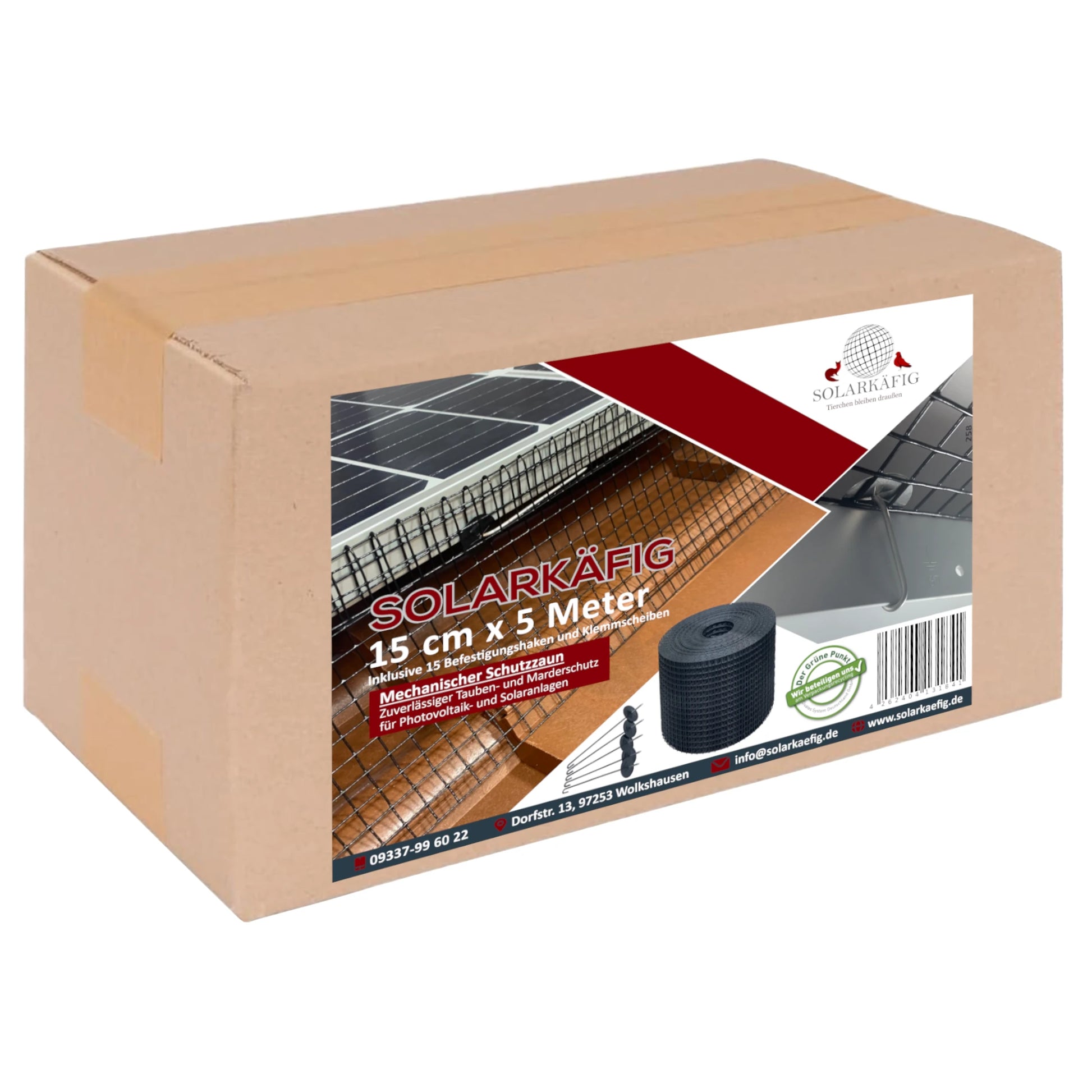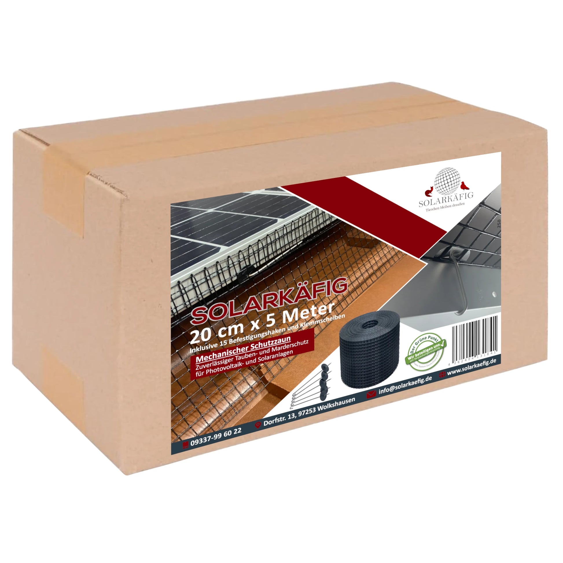 Das Solarkäfig Ergänzungssets mit 5m sind ideal, wenn Sie zusätzliche Meter Schutzzaun benötigen. Es bietet eine flexible und praktische Lösung für Nachrüstungen und kleine Erweiterungen Ihrer bestehenden Solarkäfig-Lösung.