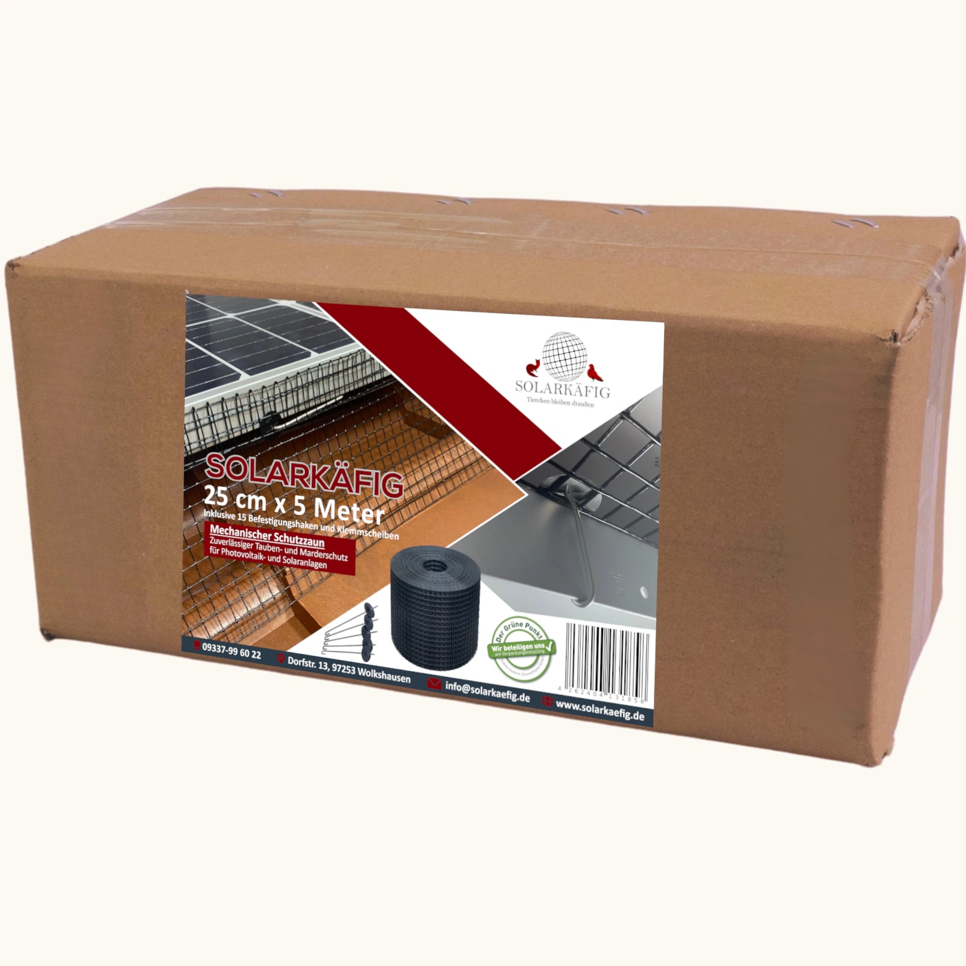 Das Solarkäfig Ergänzungssets mit 5m sind ideal, wenn Sie zusätzliche Meter Schutzzaun benötigen. Es bietet eine flexible und praktische Lösung für Nachrüstungen und kleine Erweiterungen Ihrer bestehenden Solarkäfig-Lösung.